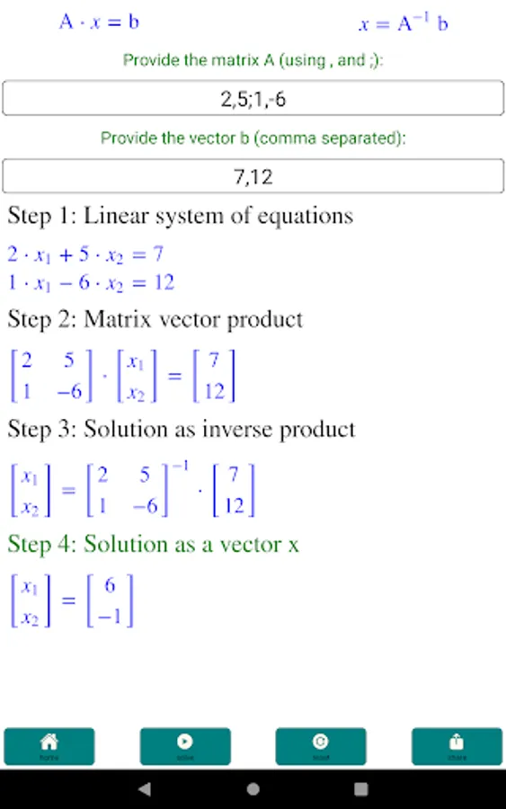 It solves system of linear equations, simultaneous linear equations (no limit on the number of equations).