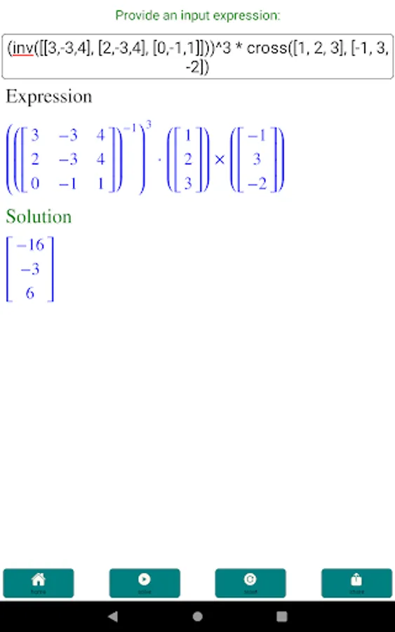 Once the expressions are solved, a beautifully written solutions are created that you can share with other or save it locally.