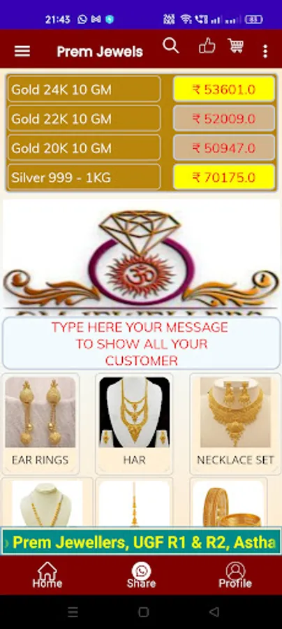Prem Jewellers Located in UGF R1 and R2, Astha Plaza, Near Arya Samaj Mandir, Aliganj, Kursi Road, Lucknow.