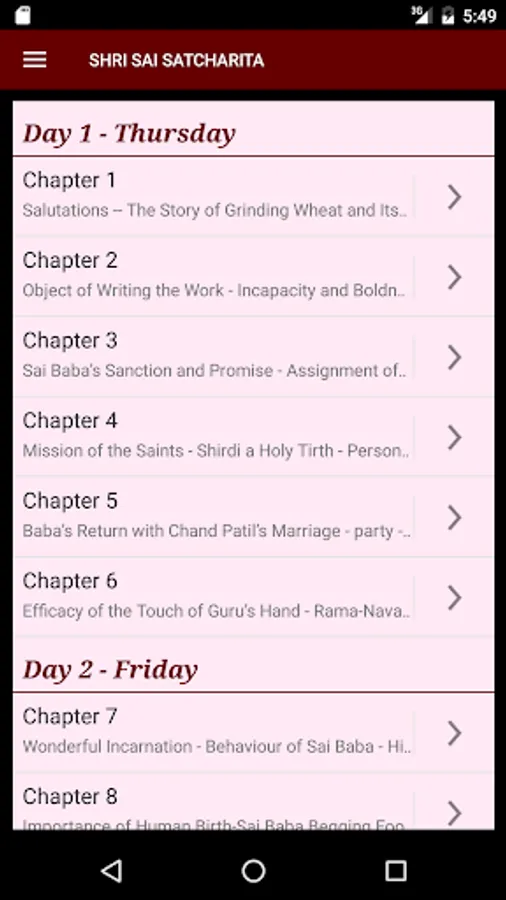 5. Life history of Baba i.e Sai Satcharita (chapters divided accordingly for Parayan )