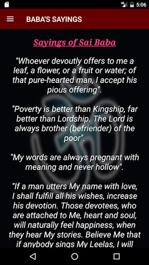 Please use this app and leave your valuable feedbacks so that I can improve the app for better and increased usage by all Sai devotees.