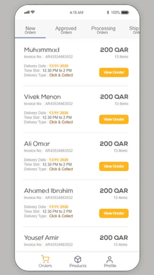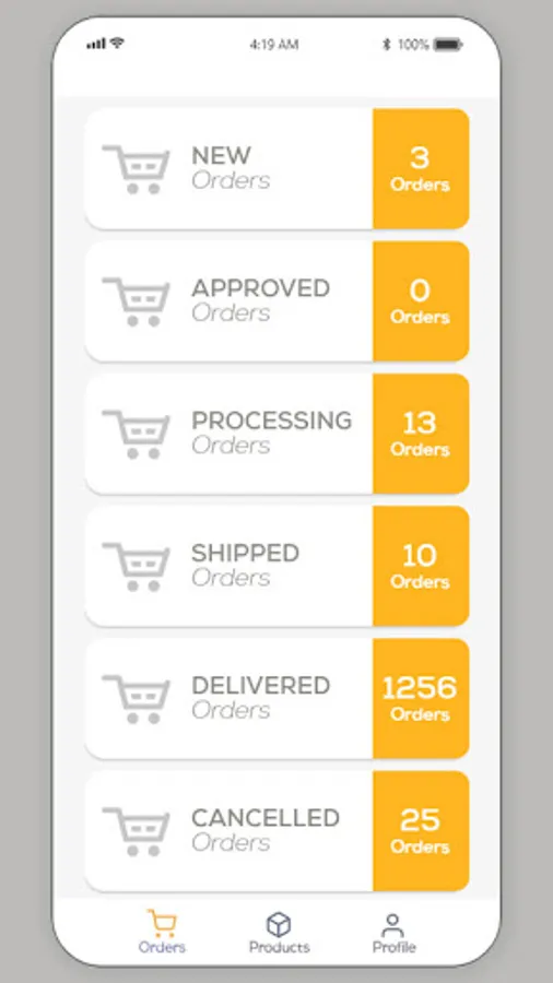 - View and update Order status- new order, approved order, processing order, shipped order, delivered orders, cancelled orders