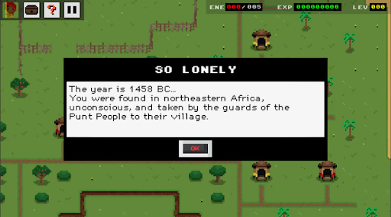 * You were found in northeastern Africa, unconscious, and taken by the guards of the Punt People to their village.