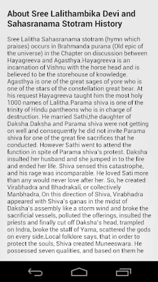 About Sree Lalithambika Devi and Sahasranamam Stotram History