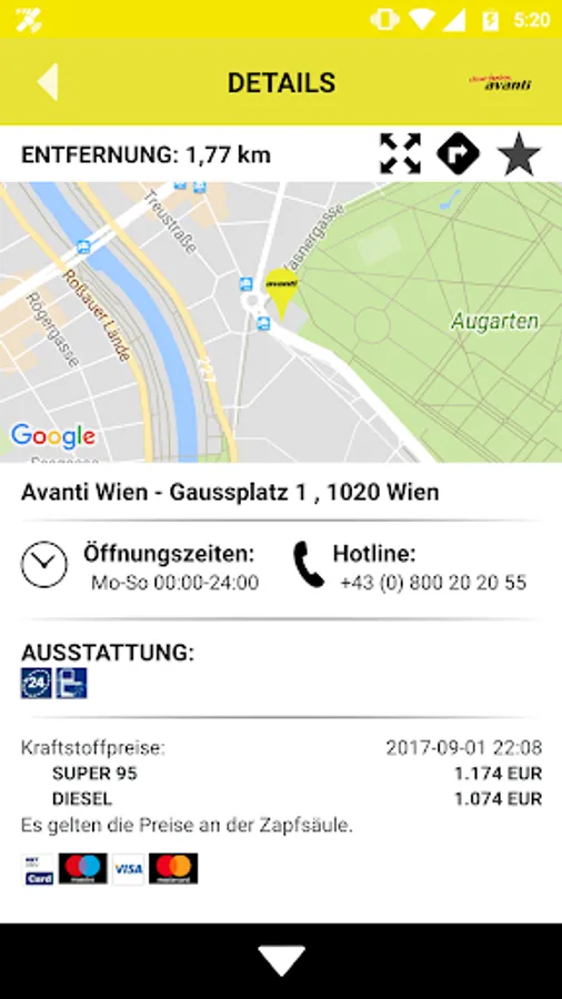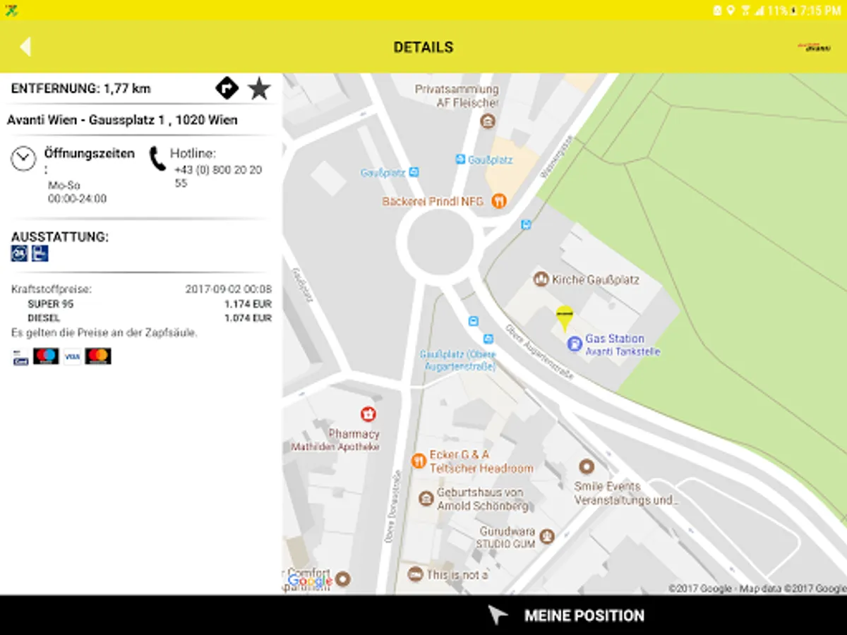 - Position of the selected gas station can be handed over to any installed navigation apps.