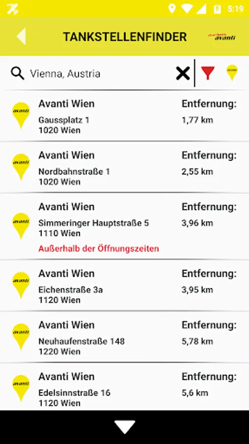 The free Avanti filling stations Finder full of helpful features offers: