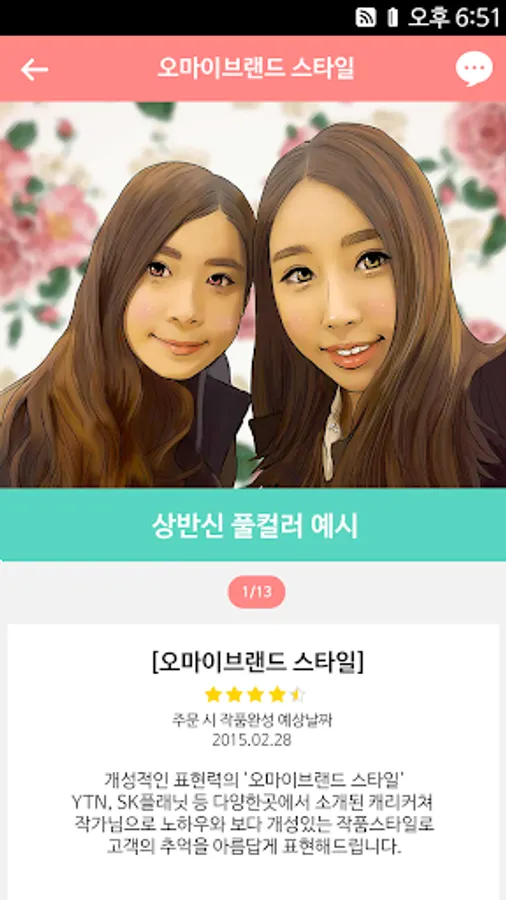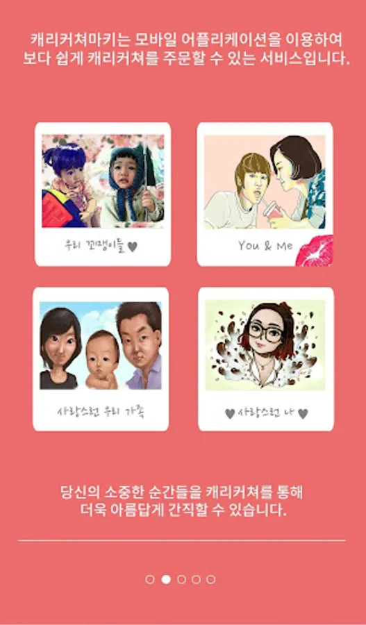 I will leave you with memorable memories with my loving parents, precious lovers and friends. 'Caricature Markies' is a service that makes it easier to order caricatures using mobile applications. It is a short but long time caricature that does not move and does not resemble! To solve these problems, to save valuable time and to provide high satisfaction, 'Caricature Marquee' talented professional writers draw caricatures in various styles. Find the style you want.