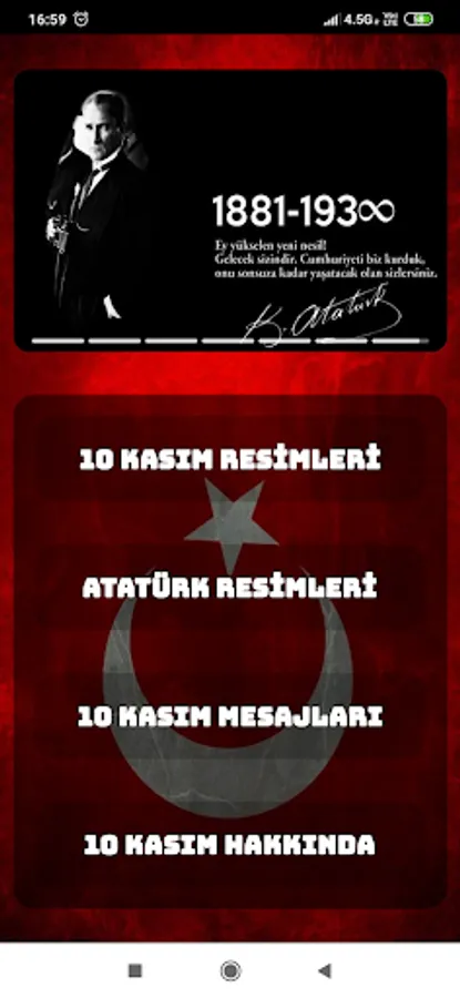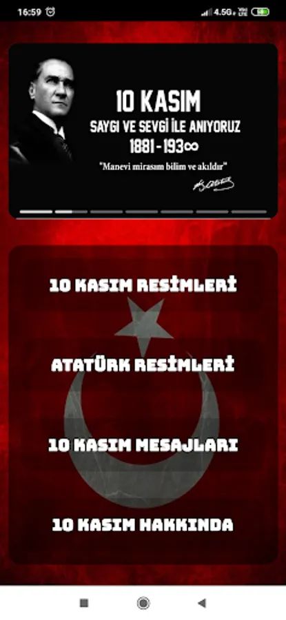 It is a national mourning year held in memory of Mustafa Kemal Atatürk, the founder and first President of Turkey, who died on 10 November 1938 at 09:05. Atatürk Week, which covers the day of November 10, is commemorated throughout the country, his principles and revolutions are explained, his speeches are broadcast on radio and television with his own voice, and films about Atatürk are shown; The week corresponding to November 10-16 is called. A minute's silence is held in the memory of Atatürk for 2 minutes throughout Turkey with the sound of sirens on November 10 at 09:05. Then, except for the flags in front of the Turkish Grand National Assembly building, the flags at all official buildings in Turkey and at the foreign representative offices of the country are lowered at half-mast as a sign of mourning. The flags in Anıtkabir are not lowered at half-mast for any reason on other days. Where the flag is not constantly hoisted, the flag is hoisted first; is then halved.