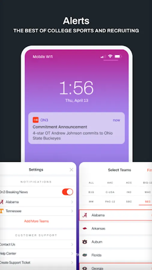 To enhance your experience, the On3 Sports App features push notifications, delivering real-time alerts straight to your device. Whether it's breaking news, game updates, roster changes, or recruiting developments, you'll never miss a beat. Customize your notification preferences to receive updates tailored specifically to your favorite teams and topics of interest. With push notifications, you can stay connected to the world of college sports anytime, anywhere.
