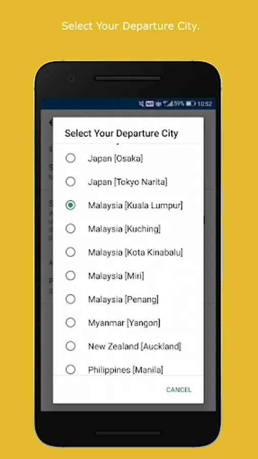 If you depart from Malaysia, select city "Kuala Lumpur" and check out the latest promotion deals and news for Malaysia. You also able to click on the url to open the link and share the promotions.
