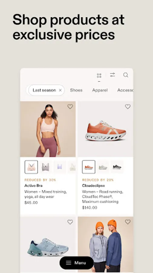 Get the inside track with a personalized, speedy shopping experience – only with the On app.