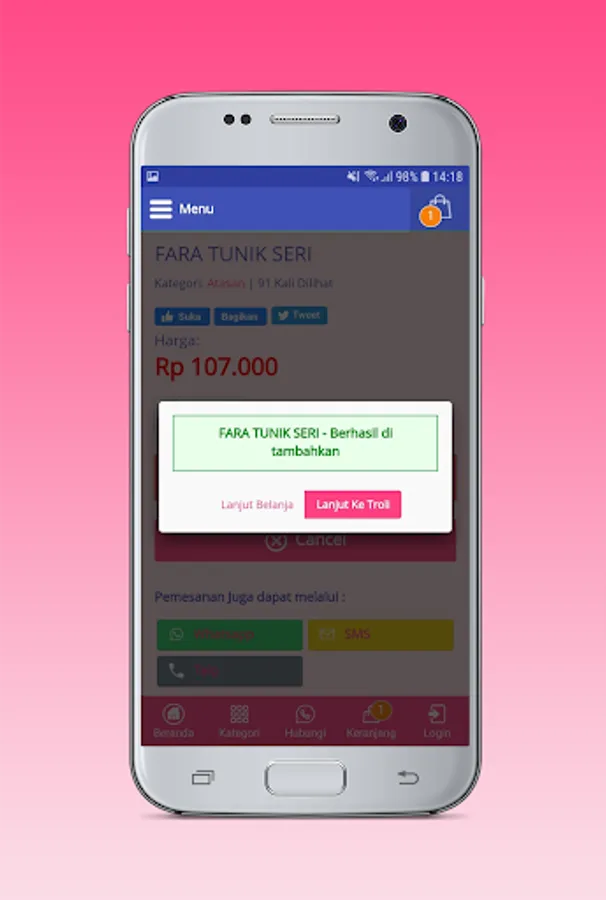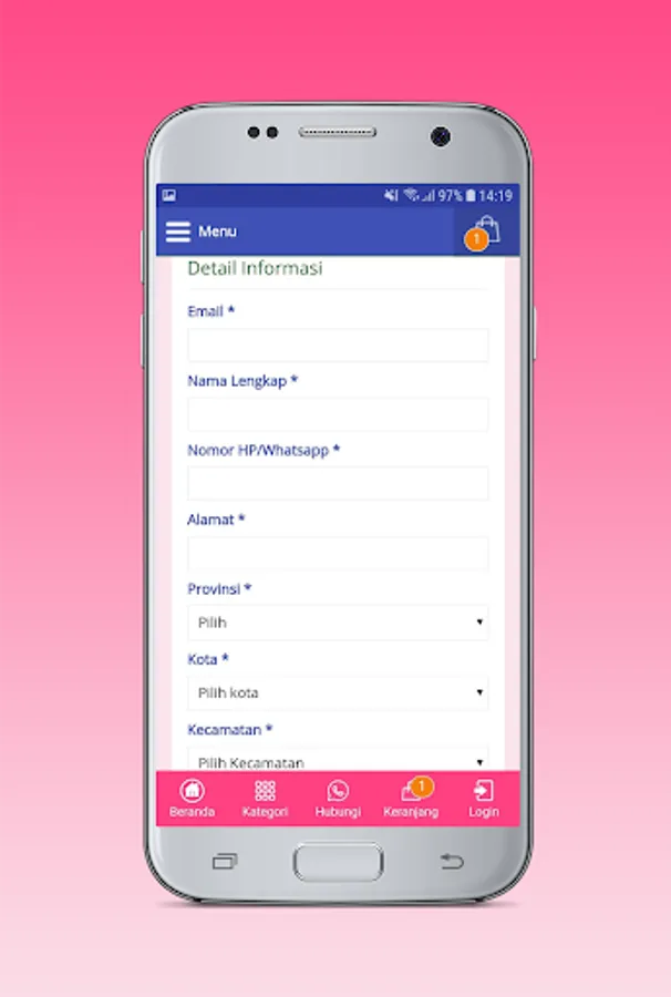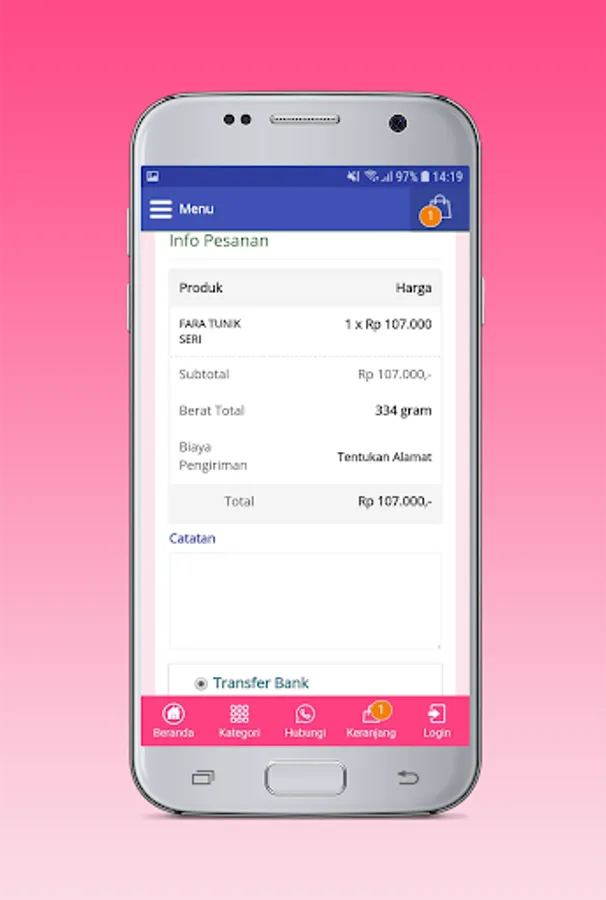 ONA Shopping Application Features have the convenience, among others, automatic shipping cost, various courier options (JNE, TIKI, POS, Wahana, Sicepat, J&T), payment confirmation, check order status, receipt check, etc.