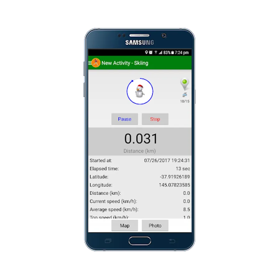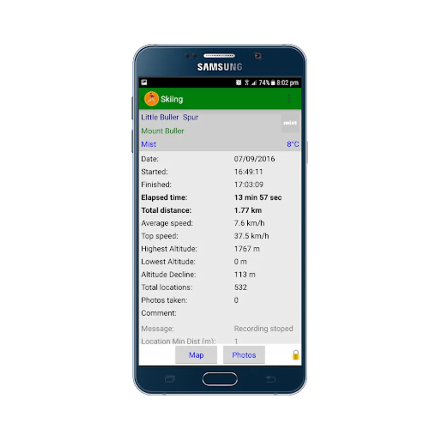 Fitness Altitude implements a handy control to start and stop recording (to be user friendlier on the mountain slopes).