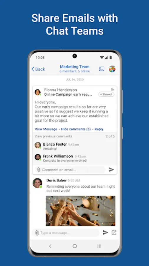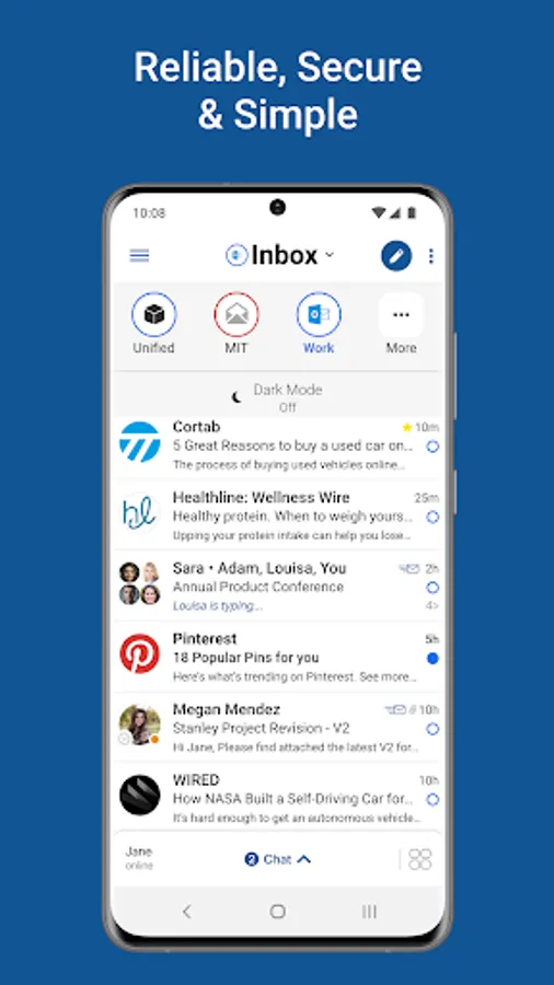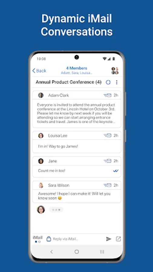 Streamline your organizational messaging with a single tap away to switch between your emails and chats. Interact via teams and direct messages in real-time. The organization contacts are smartly integrated so you can see who is available. Blix takes the best of Blue Mail, a world class email service used by millions of people worldwide, and weaves in iMail to create a super-charged platform.