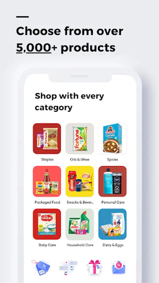 - Daily grocery & staples like Flours, Grains, Rice, Dals, Masalas, Spices, Cooking Oil, Ghee & other daily need groceries, including Grocery.