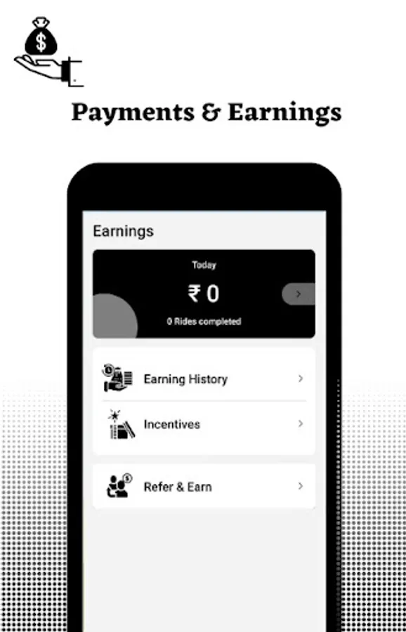 • Most important facility is that all rides earning will be your own, partners can collect the earning directly from the users by online transaction, UPI, QR code and cash payment.