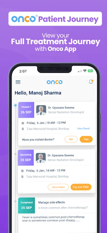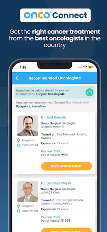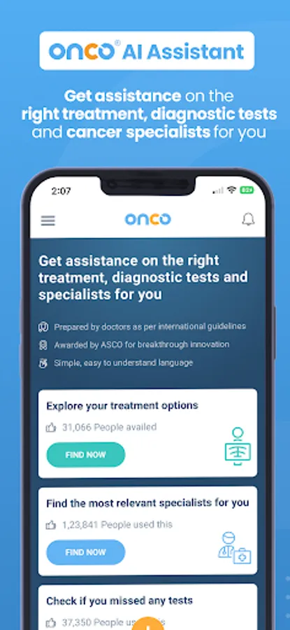 Onco Cancer Care is the world’s 1st Cancer Care app where patients get access to 1500+ Top Oncologists in India and U.S., and 500+ cancer treatment centres and quality accredited cancer diagnostic centres in India.