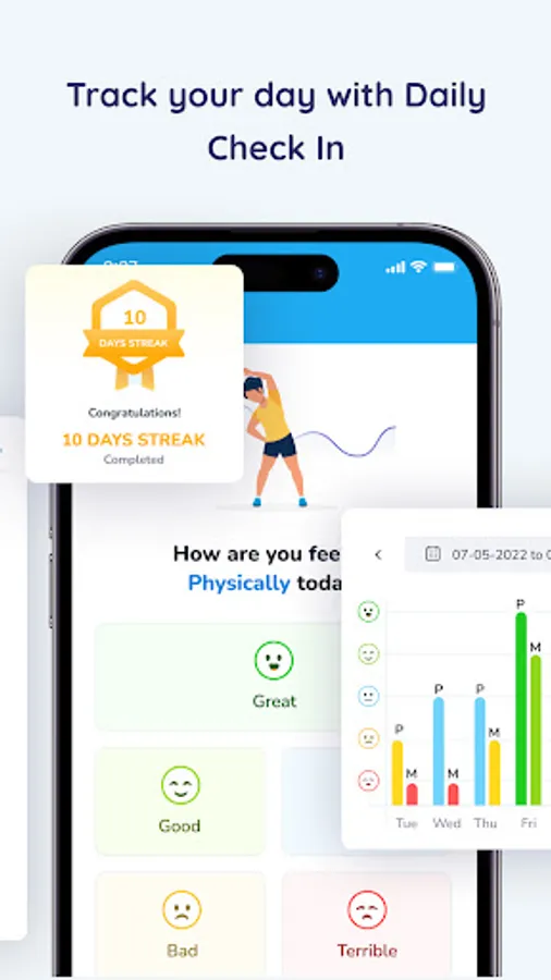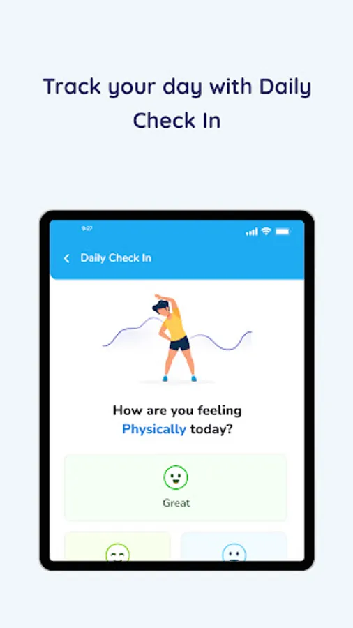 • Daily Check-In creates a daily opportunity for reflection on how you're feeling physically and mentally that can be shared with the community or saved just for you