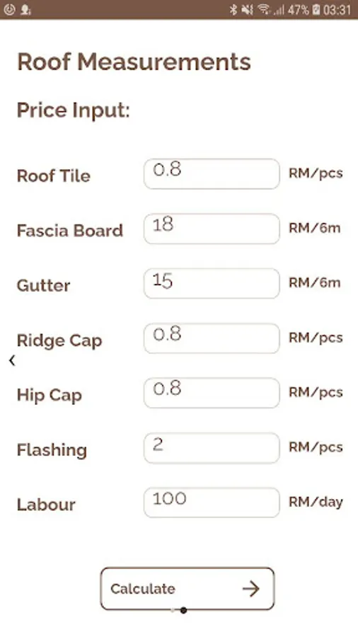 OnCost is created to help to calculate the built-up-rate for wall and roof. This system helps the users to calculate the total cost for wall and roof faster and easier. This system helps the users obtain the total cost of wall and roof in a very short time by the simplest method.