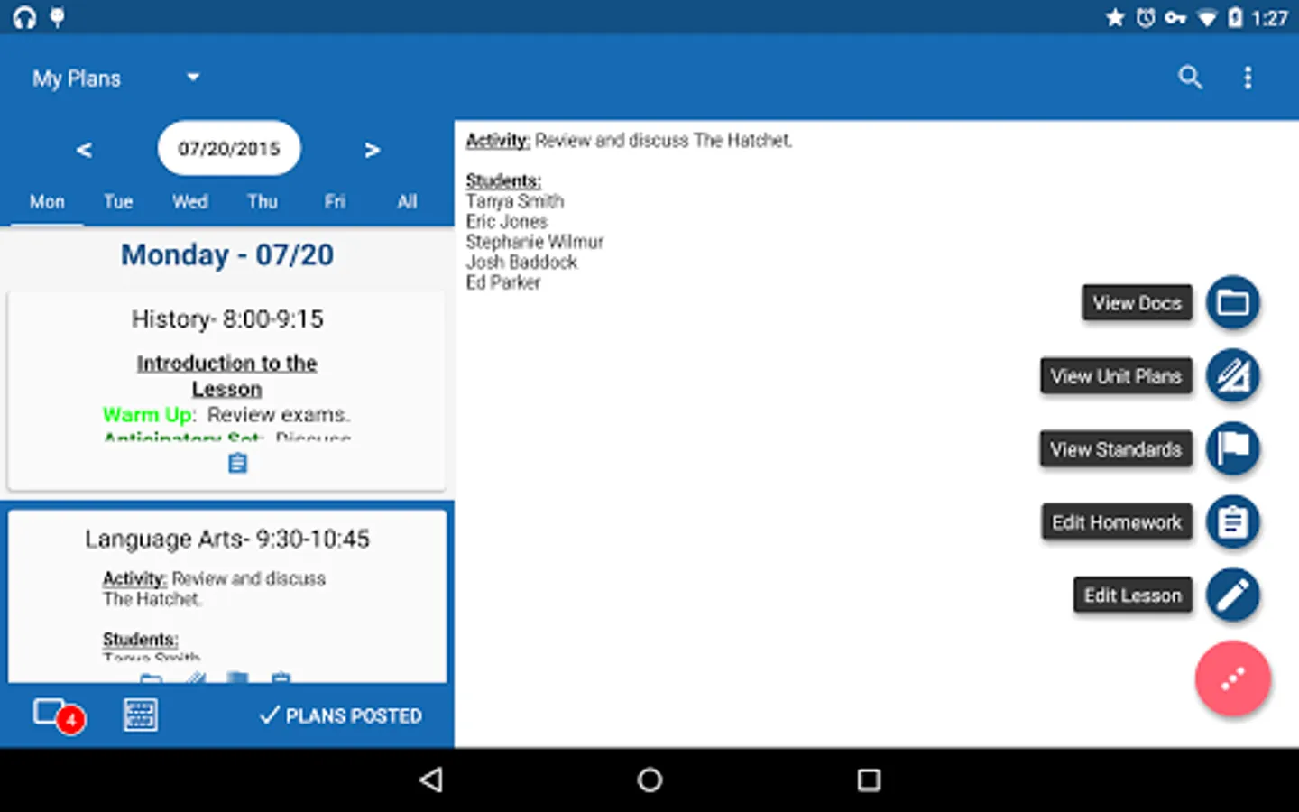 The OnCourse Lesson Planner streamlines the lesson planning process, allowing teachers to modify and submit lesson plans for review directly from your Android phone or tablet. Administrators can also use the lesson review functionality to view and review submitted lesson plans.