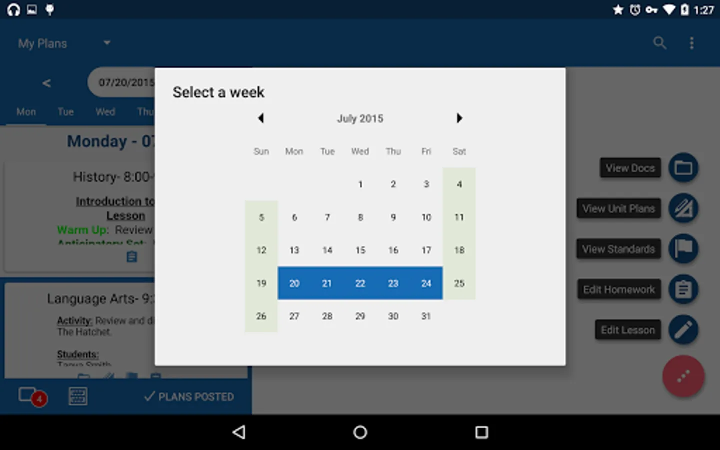 NOTE: This app must be enabled by your district to function and is free for you to download. To find out if OnCourse Lesson Planner is available at your district, check in with your help desk or contact us through our website.
