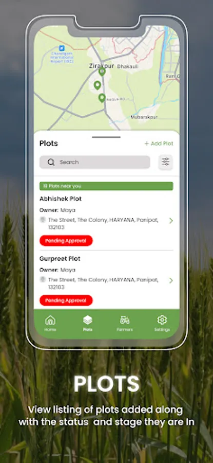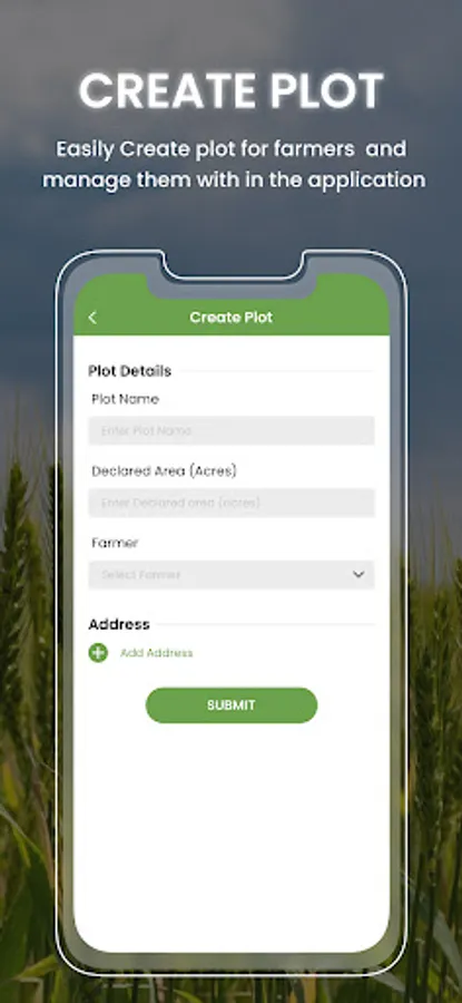- Field representatives can perform activities in newly created plots, enter inputs for chemicals and fertilizer, and raise alerts for how much crop is damaged in the plot.