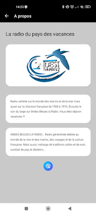 Radio dedicated to the world of the sea and sailors but also dedicated to French song from 1900 to 1970. Be on vacation all year round with Ondes Bleues la Radio.