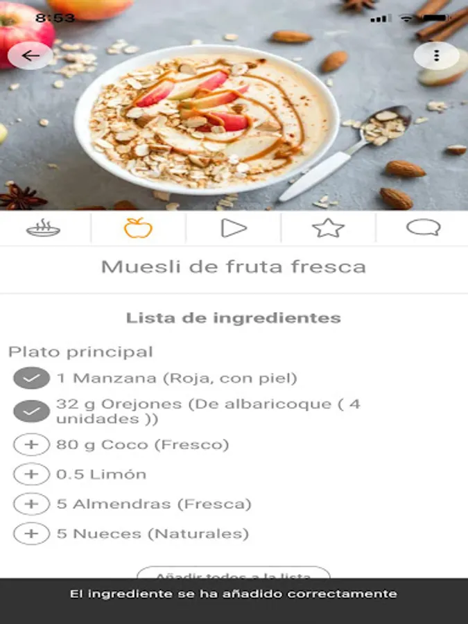 Choose the dish you want to cook and add its ingredients to your shopping list. Modify it by removing or adding ingredients at your convenience. You can also add private notes on the recipe steps.