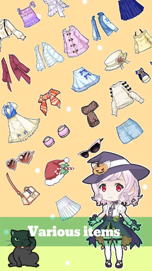 Decorate the doll with your skin tone and hair color with hundreds of dress up items.