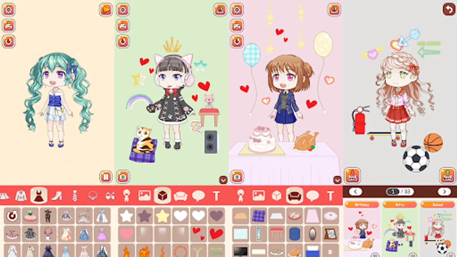 Create your own Fashion Avatar and Self Emoji for free, and you can decorate your personal room to look kawaii.