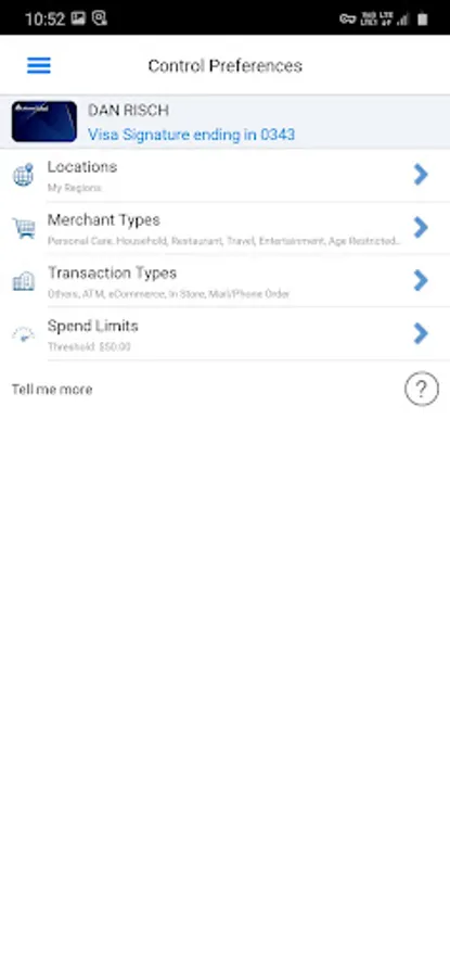 - Turn debit or credit cards on and off