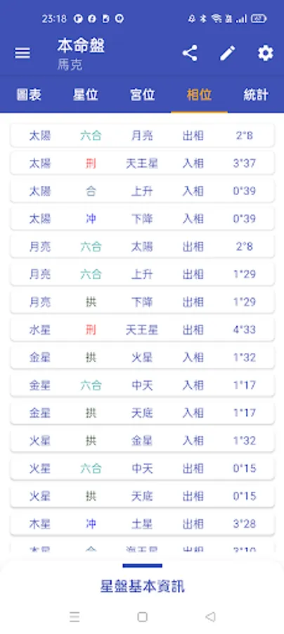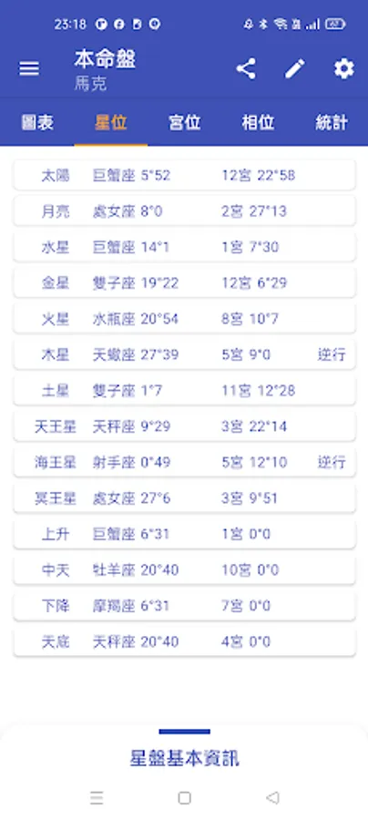 包含落入星座、相位與宮位等...