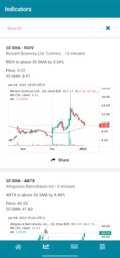 + Indicators - find stocks that meet certain technical analysis criteria to help you invest