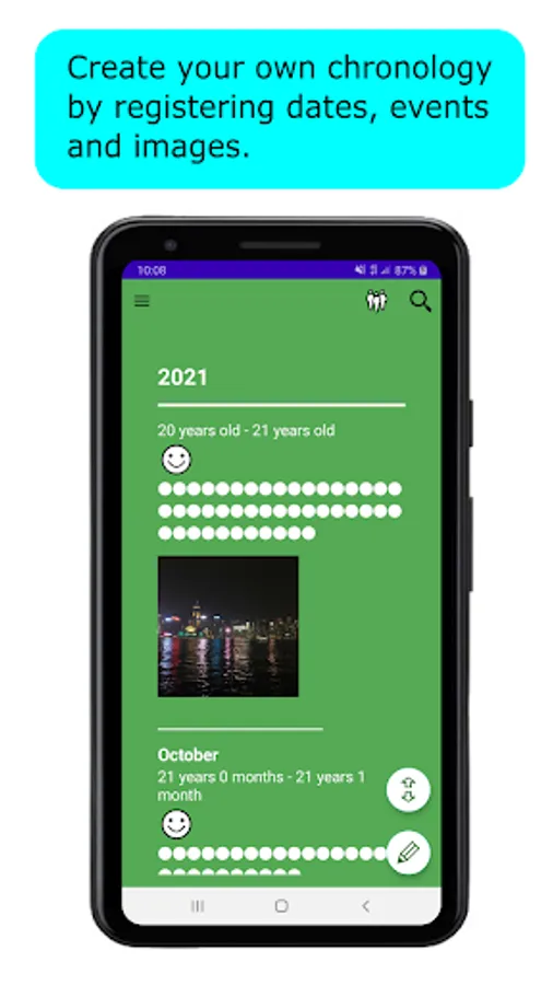 With this app, you can create "your own chronology", "list of people you have met so far" and " graph of life".