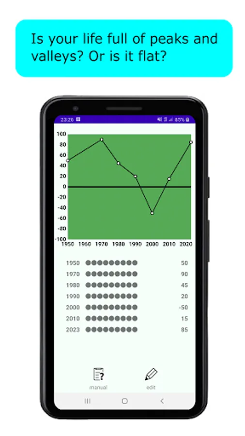 When you register the year, degree of happiness., and event, a graph will be created automatically.