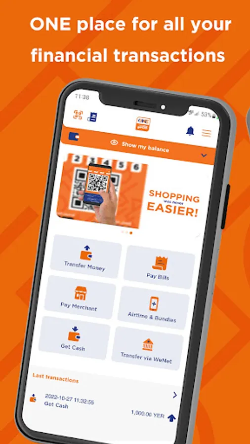 ONE Cash is an opportunity for everyONE. Regardless where you are, you can start taking charge of your financial future with this revolutionary solution as it is widely accepted among agents and merchants all across Yemen.