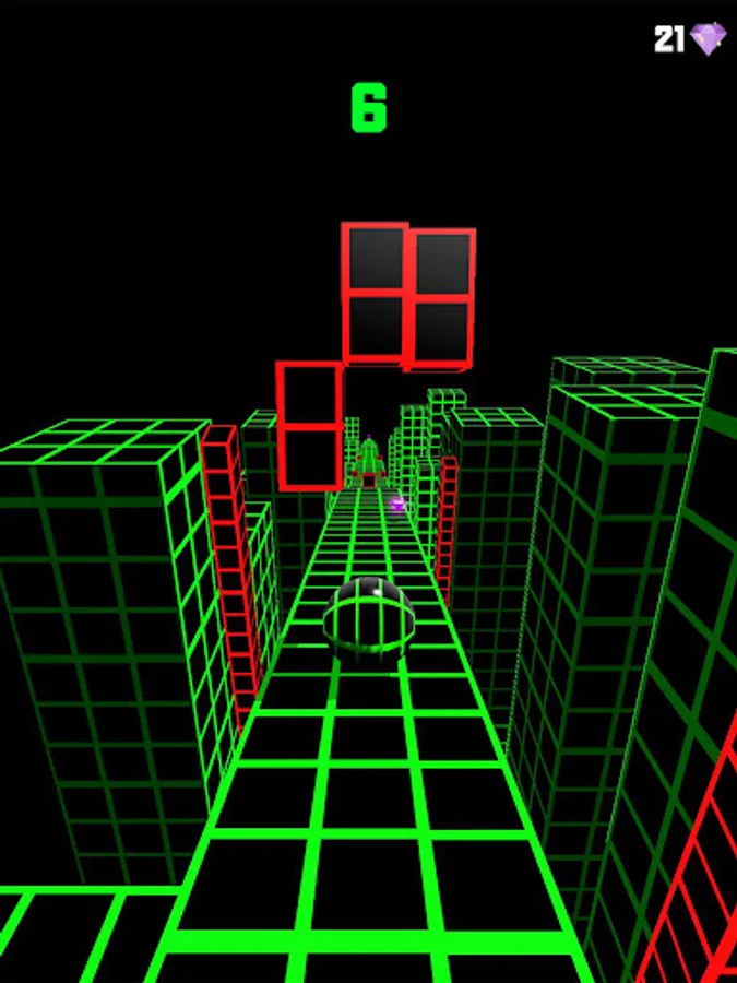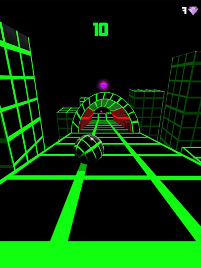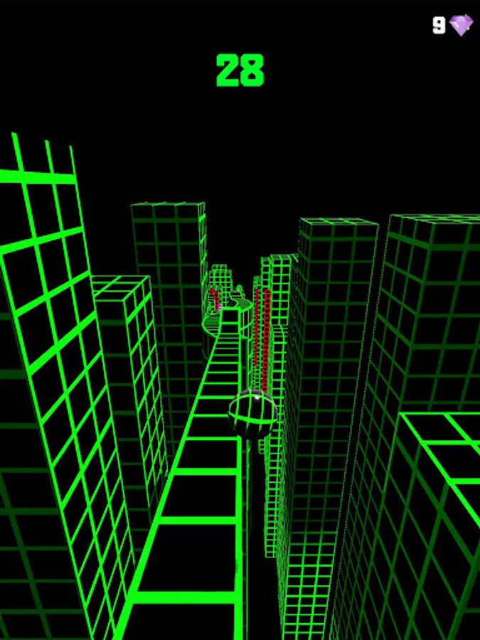 Just keeping the roller ball on the road may sound easy. Well, maybe at the beginning it’s easy. But as you roll and jump in the sky, the road and rooftops can get tiny, and numerous obstructive objects can occupy the road. This is when you need to show your skills and reflexes. The goal of the game is to achieve and break your high scores. Can you become one of the 1% players club that scored more than 1000 points?
