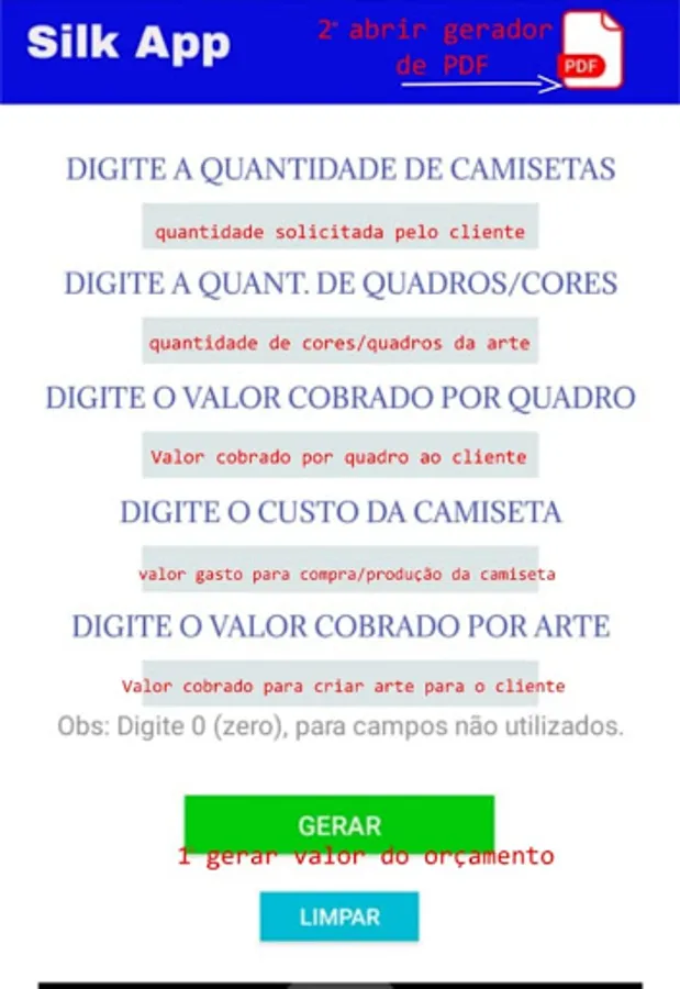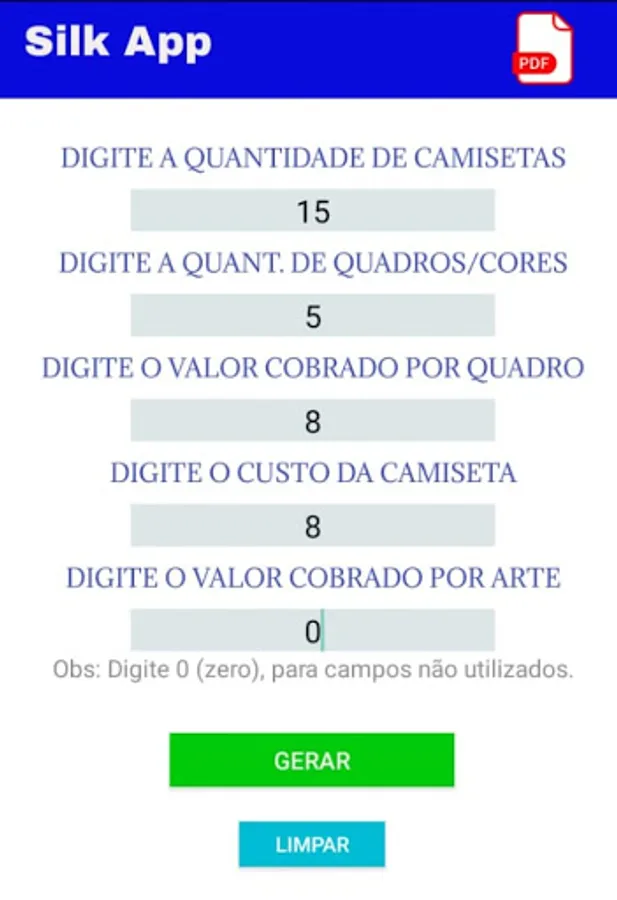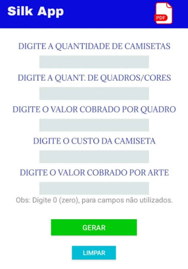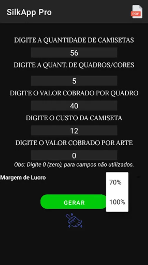 With SilkApp, generating budget for the end customer just got easier. Our calculation already takes into account the costs of ink, emulsion and consumption, making available, based on the number of t-shirts, a suggested sales price per t-shirt, now with the possibility of generating the budget in PDF.