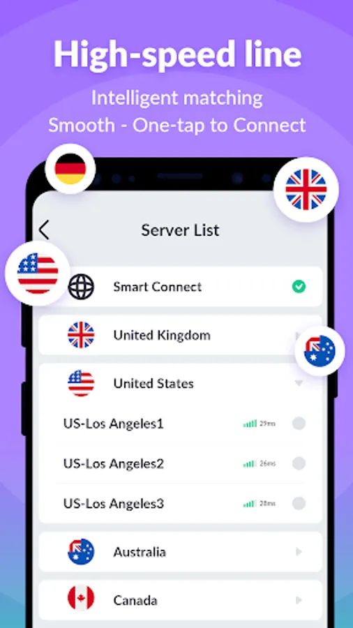 We have built a global VPN network included America, Europe and Asia, and expand to more country soon. Most servers are free to use, you can click the flag and change server as any times as you want.