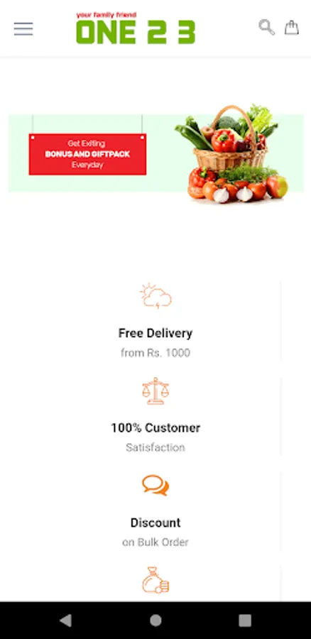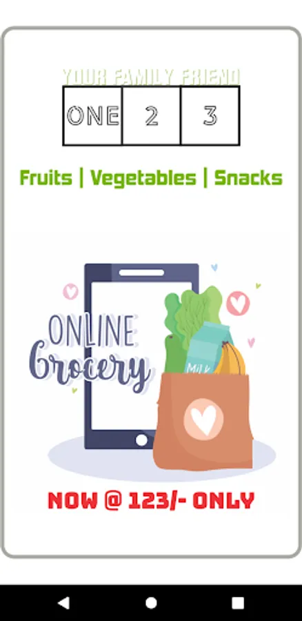 One23 Your Family Friend android app is an online fruits, vegetables, snacks order and home delivery app.
