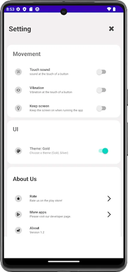 - Prevent app screen from turning off: When set, the app screen will not turn off.