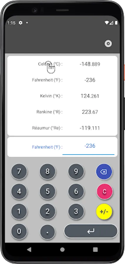 It is an easy-to-use temperature conversion calculator that allows you to immediately know the different measurement units of temperature.