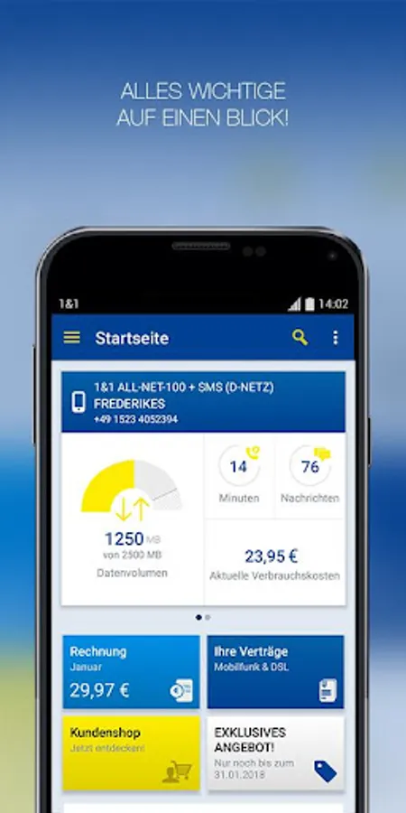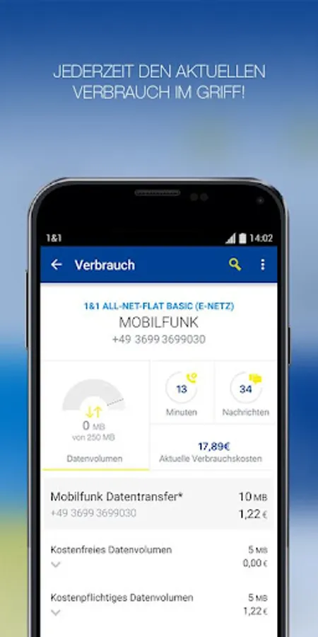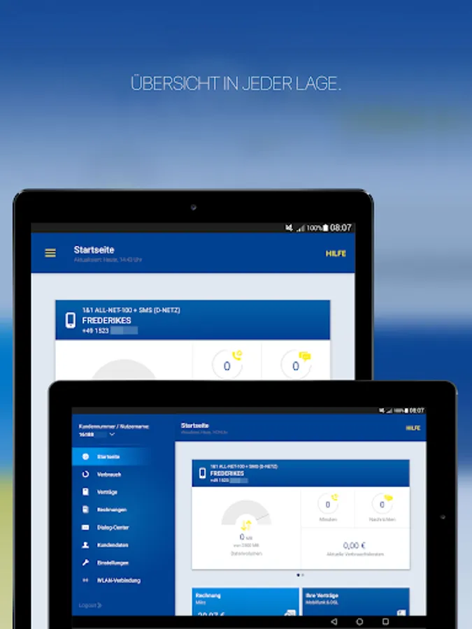 With the 1 & 1 Control Panel app, you manage your personal account easily on your smartphone or tablet - wherever you have an internet access. Keep your data usage, your calling minutes and costs incurred at any time in view. Watch your customer data and invoices, extend your contract, you entrust number taking and DSL parades and much more! Helpful instructions and answers to frequently asked questions can help you all aspects of your contract and 1 & 1 products.