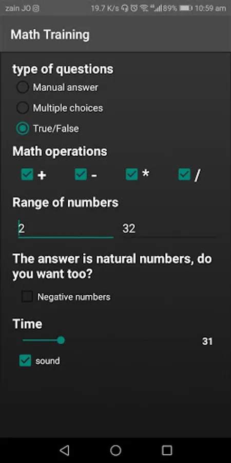 The solution methods currently available are: 1- True / False 2- Multiple options 3- Manual entry