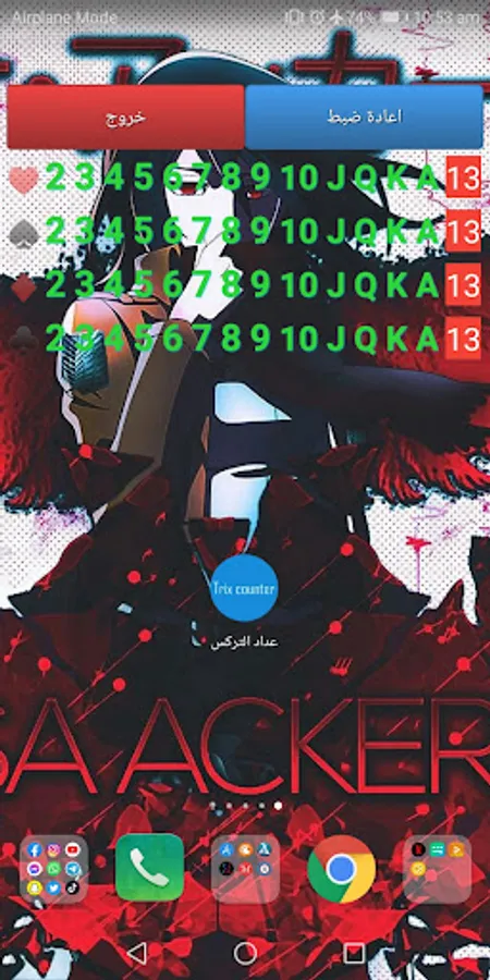 The application shows a counter that floats above the applications, and through this counter you can count playing cards while playing the Trix game on your Android phone