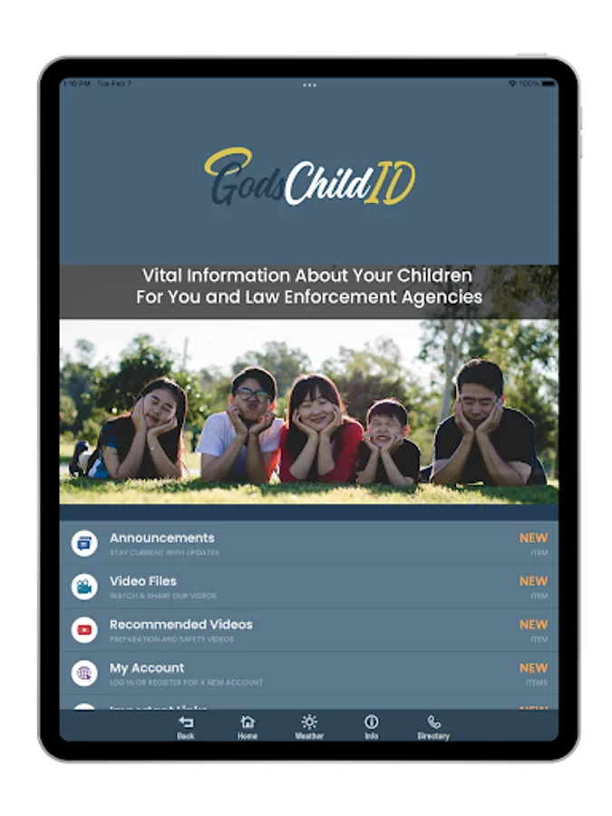 God's Child ID is an online ID Kit for parents where they can securely place up to eight children on a personal page. If a child is ever lost or abducted, the parent can turn that child's information into a flier and, text it to 911, share on Facebook, email, or print it.