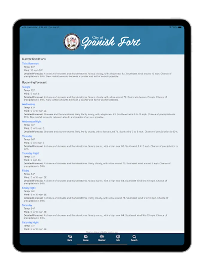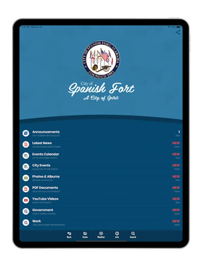 City of Spanish Fort is the official mobile app for the City of Spanish Fort, Alabama. This app provides connection between the City and its Citizens and Visitors. This app is a convenient way to stay current on upcoming events, meetings, local news and much more. Whether a Resident of Visitor, this free app is a great way to stay connected with the City of Spanish Fort.