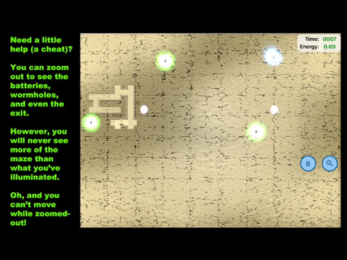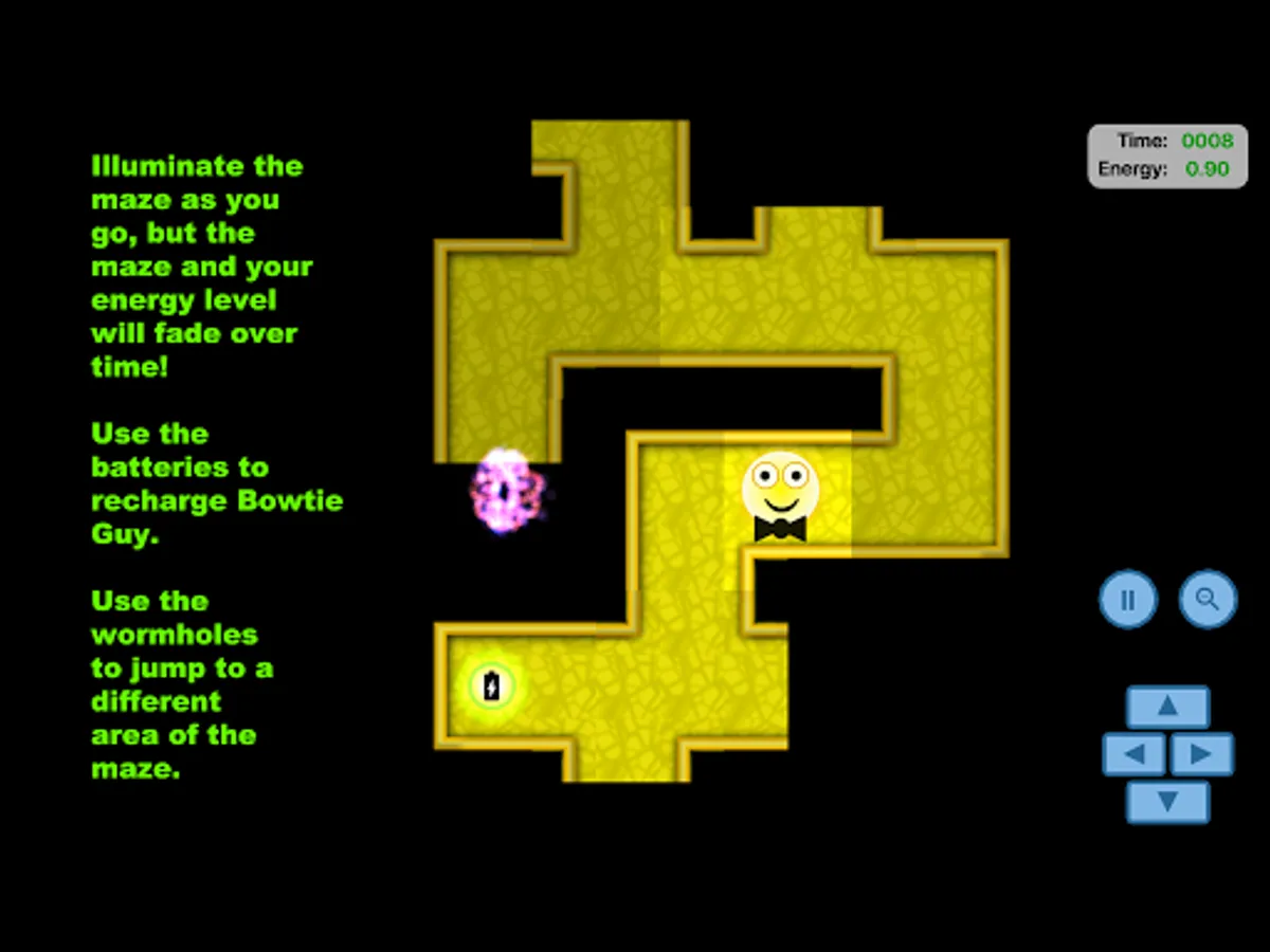 But, he won't be smiling for long unless you can navigate through the dark maze, illuminating it as you go. Find the way out before the maze’s illumination fades and your Bowtie Guy loses his energy.