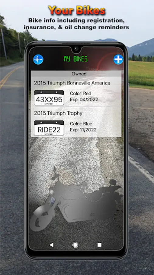 Manage and keep handy your basic bike information, tire pressures, registration date, insurance and roadside assistance information all in one place.