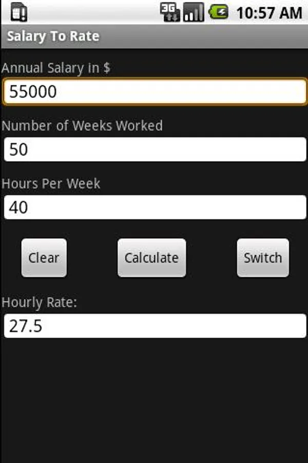 This application converts your salary to an hourly rate, based on your average weeks and hours worked.